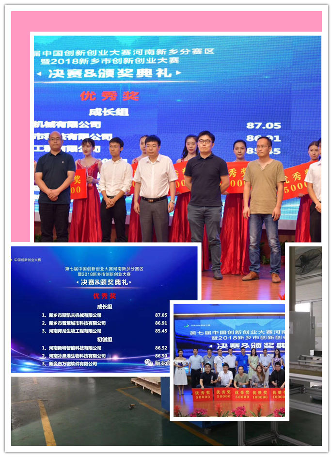 热烈祝贺:新乡市斯凯夫机械有限公司荣获第七届中国创新创业大赛河南新乡分赛区暨2018新乡市创新创业大赛成长组优秀奖!